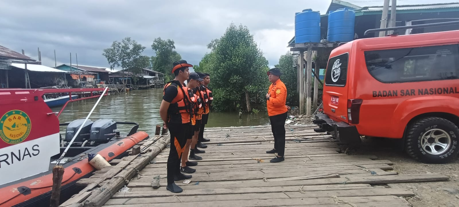 Adapun peralatan yang dikerahkan meliputi satu unit truk personel, satu unit Rigid Buoyancy Boat (RBB), perlengkapan medis, alat komunikasi, serta AquaEye untuk membantu pencarian di bawah permukaan air.