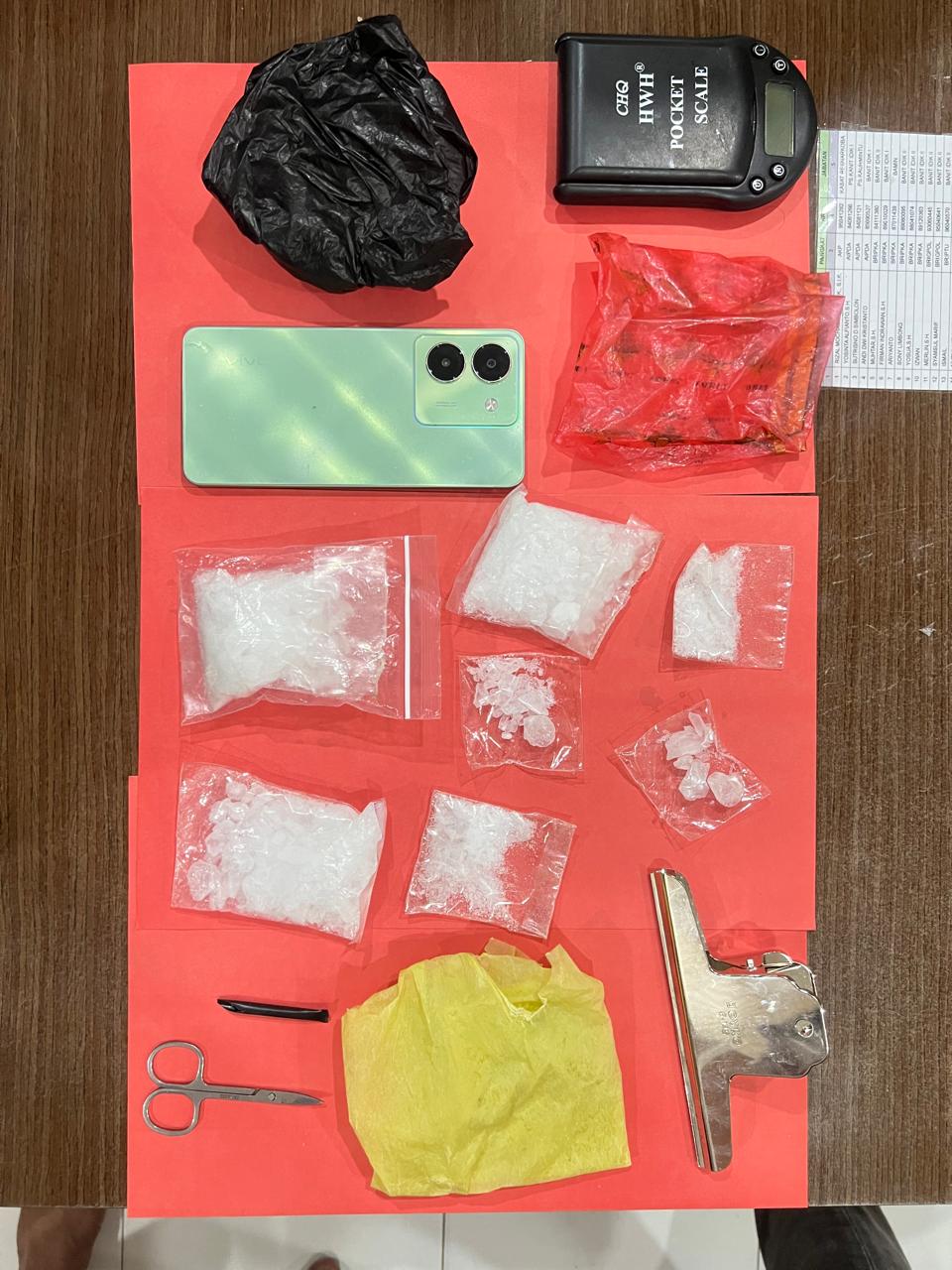 1. 7 bungkus sabu seberat 133,96 gram;